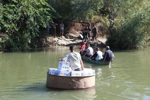 The supplies of 1.5 tons of flour, 100 packages of food items, and 600kg of milk for children were carried to the Syrian side of the border by IHH aid teams via Orontes River. The food packages contained cooking oil, macaroni, rice, olive, bulghur, dried beans, red lentils, tomato paste, and sugar.