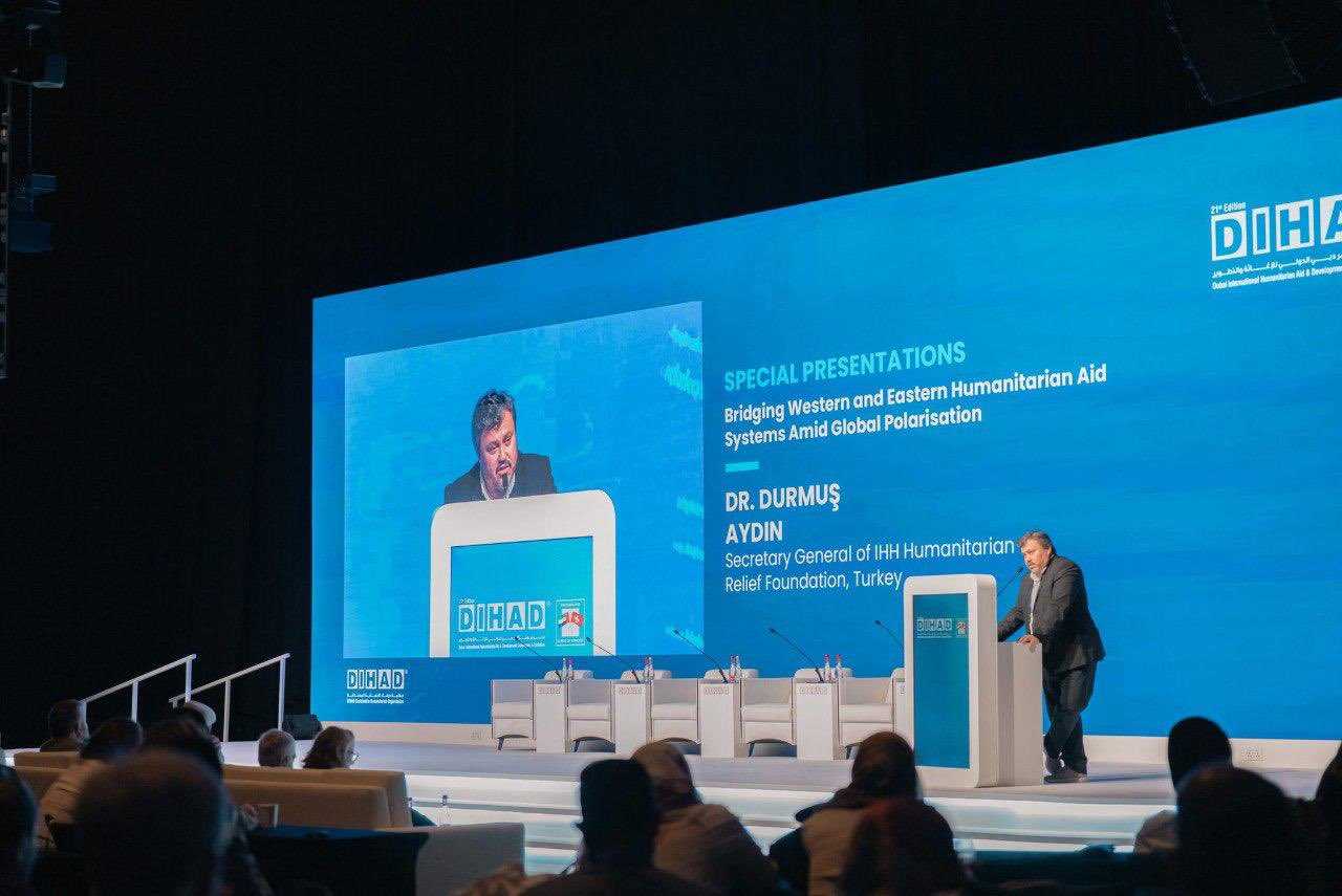 in the event, 64 main sessions and 197 workshops were organized. Among the prominent themes of the event were ‘Humanitarian Aid Work in Conflict Zones’, ‘Financing Models’, ‘The Combination of Development and Humanitarian Aid’, ‘Globalization and Localization’, and ‘The Effects of Climate Change and Population Movements on Humanitarian Aid’. IHH Secretary General Dr. Durmuş Aydın gave a speech on ‘Bridging Western and Eastern Humanitarian Aid Systems in Global Polarization’ at the exhibition.