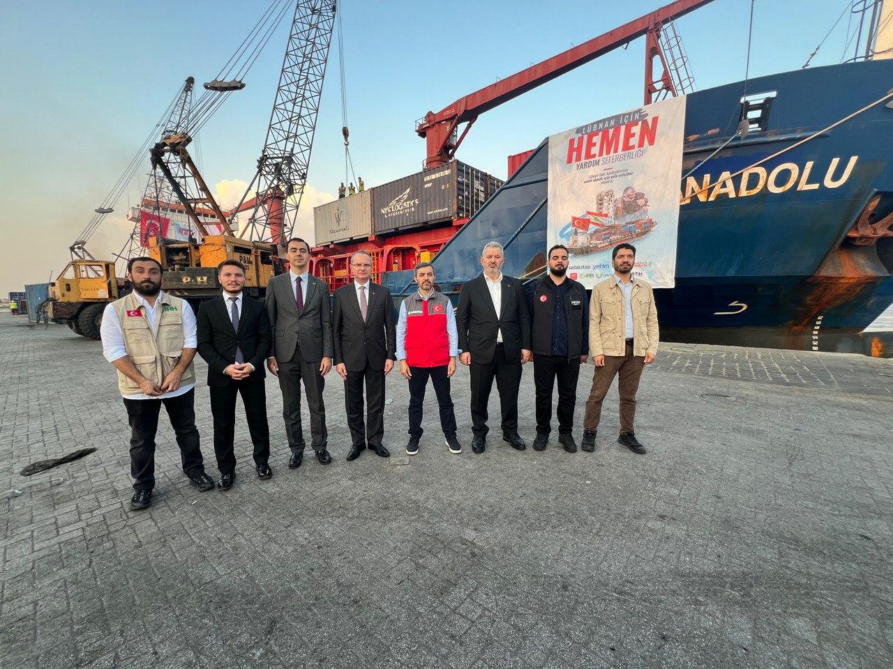 The humanitarian aid ship, prepared collaboratively by İHH Humanitarian Foundation, Sadakataşı Derneği, Yetim Vakfı, Yeryüzü Doktorları Derneği, Sadece İnsan Derneği, Fetih Vakfı, AID International Doctors Association, Umut Ol Derneği, and Darul Eytam Vakfı reached the Port of Beirut with 1,000 tons of humanitarian aid materials. The ship was welcomed at the port by AK Party Member of Parliament Hasan Turan, President of the Lebanon-Turkey Parliamentary Friendship Group Hasan Murad, Turkey's Ambassador to Lebanon H.E. Ali Barış Ulusoy, Secretary General of the Lebanese High Relief Commission Muhammed Hayr, and representatives of civil society organizations.