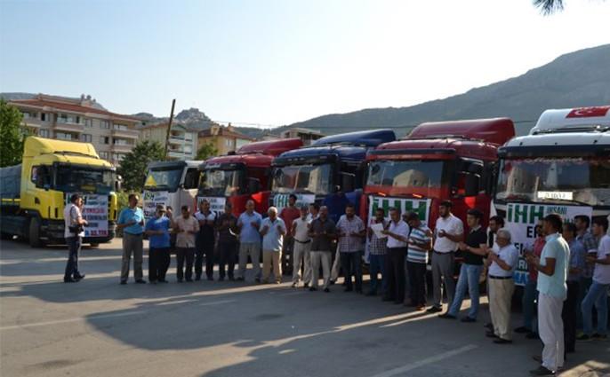 Merzifon’da hazırlanan 2 TIR, Havza, Taşova, Erbaa ve Suluova’da hazırlanan 1’er TIR, diğer ilçelerde hazırlanan 6 TIR ve Amasya merkezde hazırlanan 3 TIR, Amasya İHH’dan 5 kişilik bir heyetle beraber Hatay Reyhanlı’daki koordine merkezine doğru hareket etti.