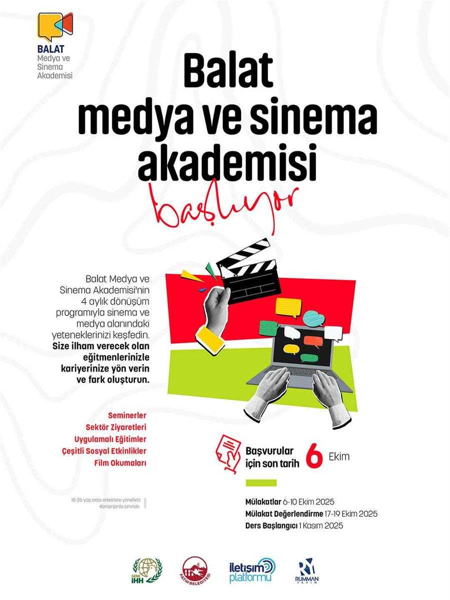 Medya ve sinema alanında kendisini geliştirmek isteyen gençlere yönelik olarak düzenlenen Balat Medya ve Sinema Akademisi, 3. dönemi için kapılarını açıyor. Akademide öğrenciler, medya alanında muhabirlik, sosyal medya, grafik tasarım, fotoğrafçılık ve dijital pazarlama; sinema bölümünde ise senaryo yazarlığı, yönetmenlik, görüntü yönetmenliği ve kurgu dersleri alacak.