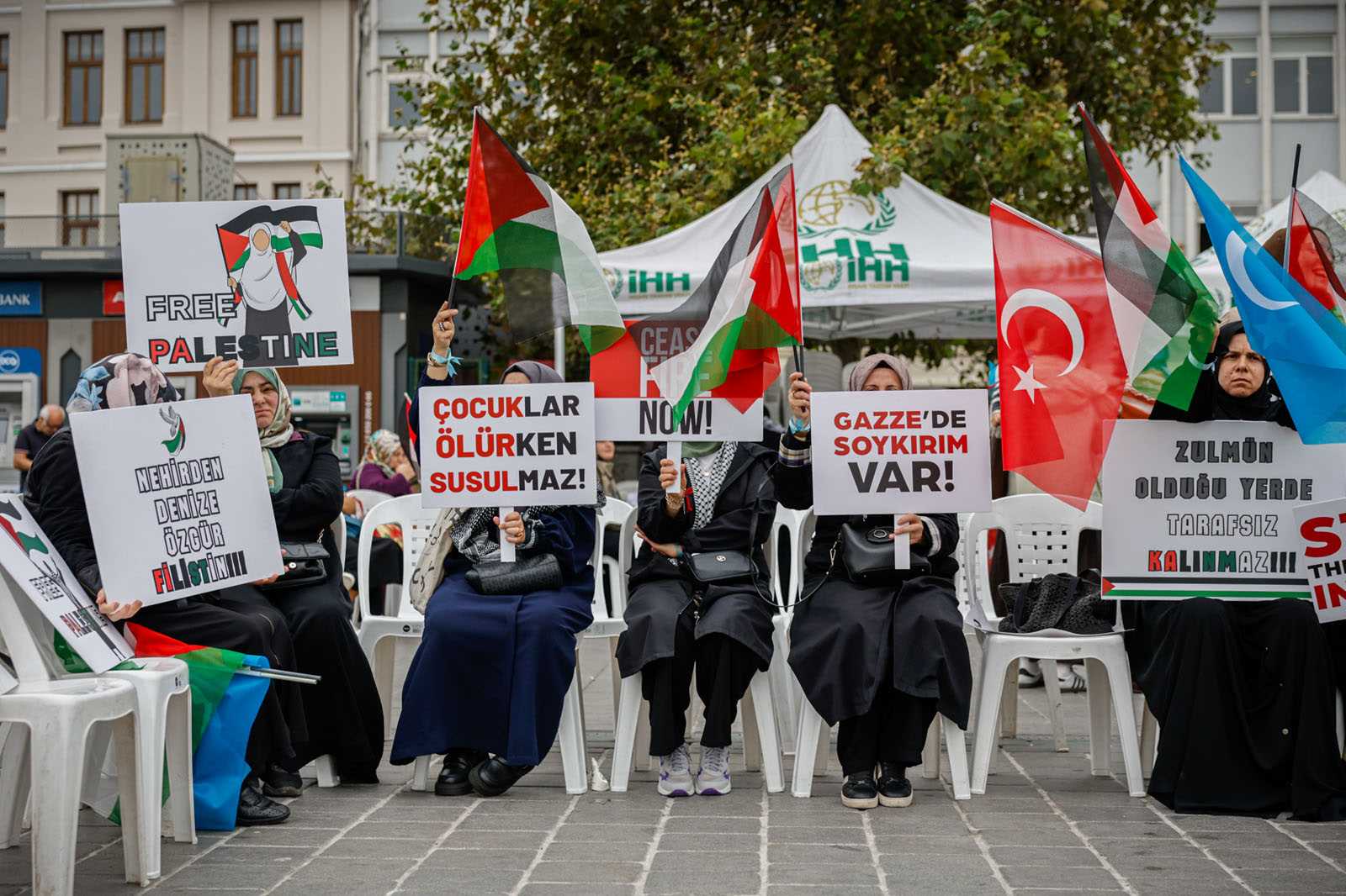 Eminönü’nde her gün 24 saat düzenlenen eyleme destek verme çağrısı yapan Yıldırım, “Pazar günü öğlen namazının ardından Ayasofya Meydanı’ndan Eminönü Meydanı’na kadar yürüyüş yapılacak. Şu bir milyon insanı bir toplayın ülke olarak. Ben halkı halka şikayet ediyorum. Ankara’da da aynı saatleree ve Türkiye’nin tüm illerinde bu eylemler yapılacak. Hepinizden destek bekliyoruz. Sumud Filosu’nda şunu öğrendik, İsrail’in müdahale kapasitesi açığa çıktı. Yani 100-150 tane gemi göndersek bir kısmı içeri girecekmiş” şeklinde konuştu.