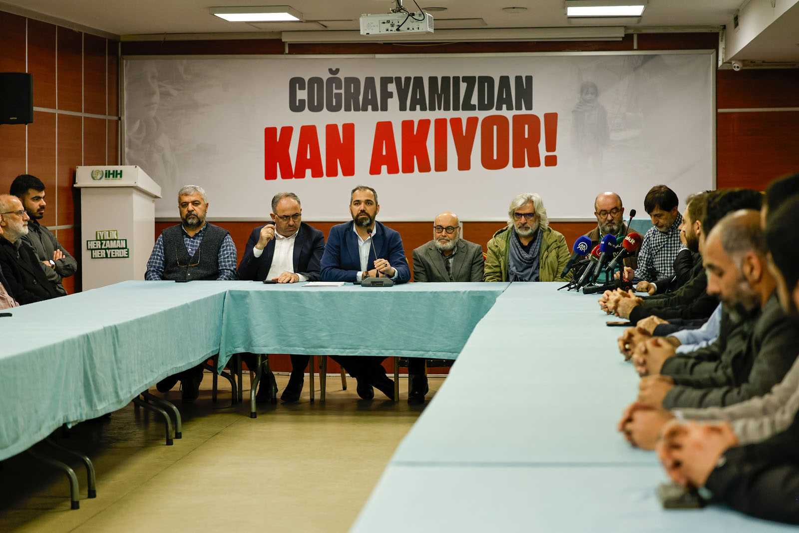 Fatih’te bulunan İHH Genel Merkezi’nde düzenlenen basın açıklamasına çok sayıda sivil toplum kuruluşu temsilcisi ve gazeteci katıldı.