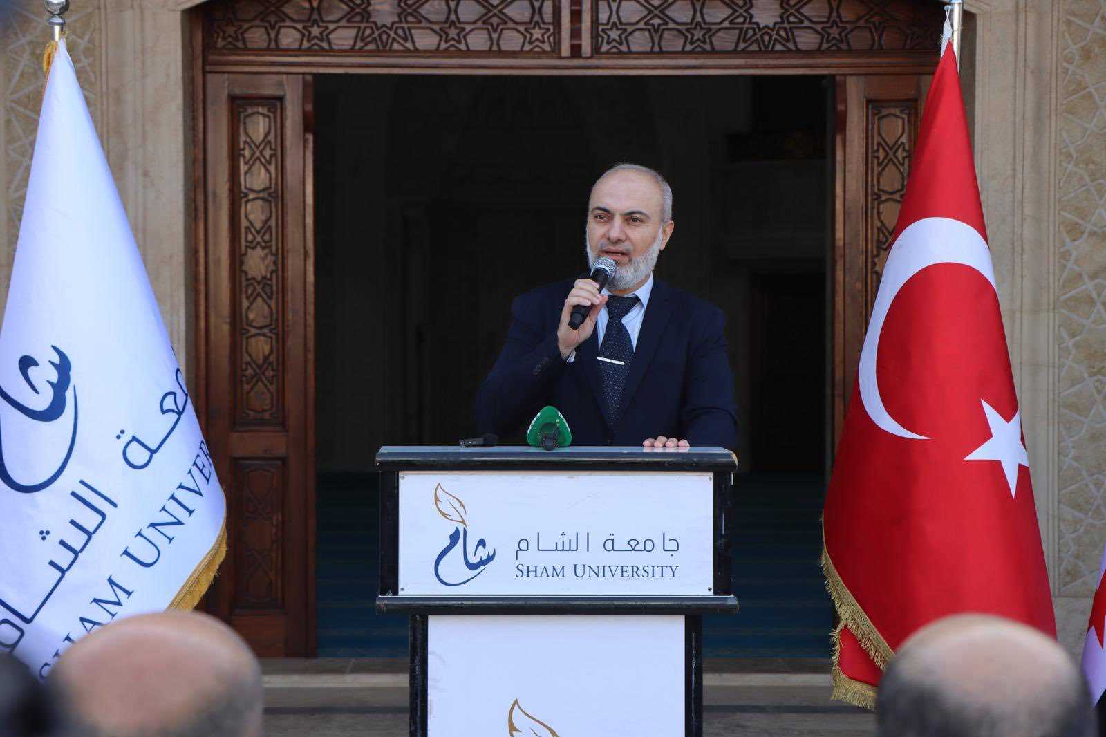 Açılış konuşmasını yapan Şam Üniversitesi Rektörü İzzeddin El Kaddur, “2016 yılından beri eğitim veren üniversitemiz, çok zor şartlar altında bugüne gelmiştir. Çok şükür bugünde yeni bir eğitim kompleksinin açılışı için bir araya geldik.”