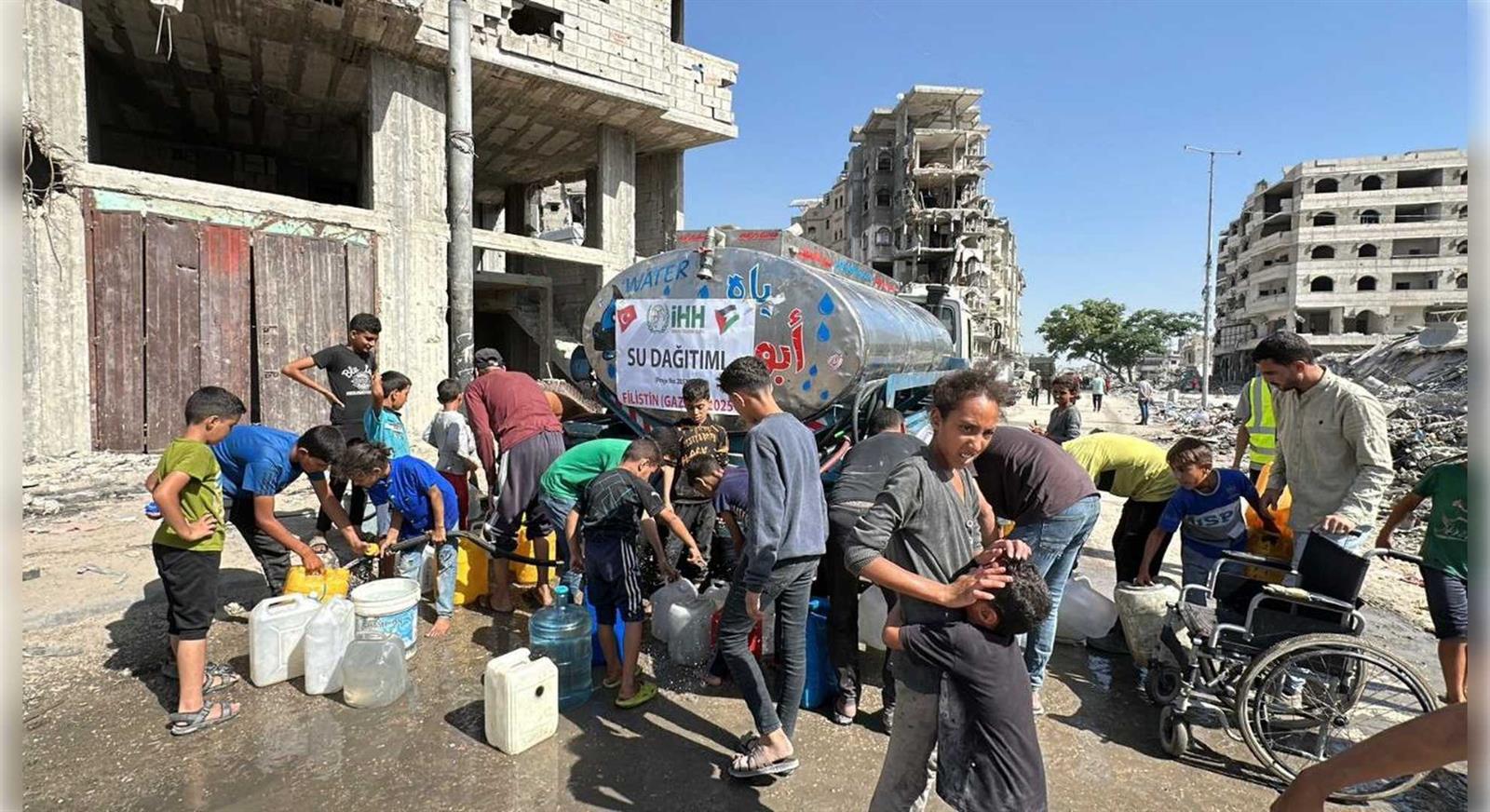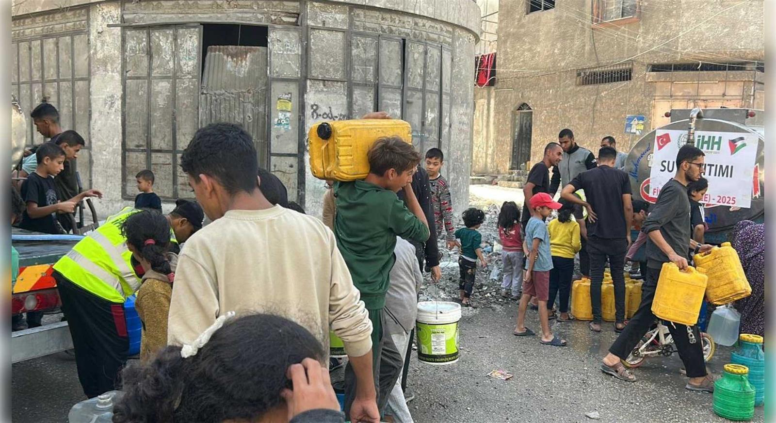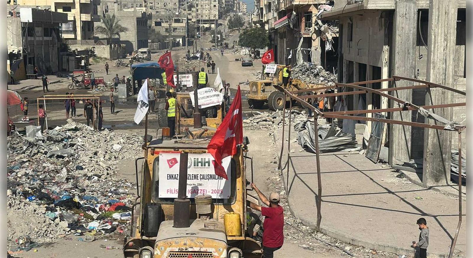 7 Ekim 2023’ten bu yana süren saldırılarda, İsrail’in uyguladığı sistematik şiddet sonucu 70 binden fazla sivil hayatını kaybetti, 130 binden fazla kişi yaralandı. Rjimin sürdürdüğü insanlık dışı abluka sebebiyle 460’tan fazla kişi açlıktan yaşamını yitirdi. Gazze Şeridi’nde saldırılar nedeniyle 454 binden fazla konut tamamen yıkıldı; okullar, hastaneler, altyapı tesisleri ve kamu binaları kullanılamaz hale geldi. İHH, özellikle Gazze’nin kuzeyinde büyük yıkıma uğrayan bölgelerde ağır iş makineleriyle enkaz kaldırma faaliyetleri yürütüyor. Bu çalışmalarla, hem halkın ulaşımını kolaylaştırmak hem de yardım malzemelerinin dağıtımını hızlandırmayı hedefliyor. Altyapının tamamen çökmesi nedeniyle içme suyu kaynaklarının büyük bölümü kullanılamaz hâle gelirken, vakıf günlük olarak binlerce kişiye nitelikli içme suyu ulaştırıyor.