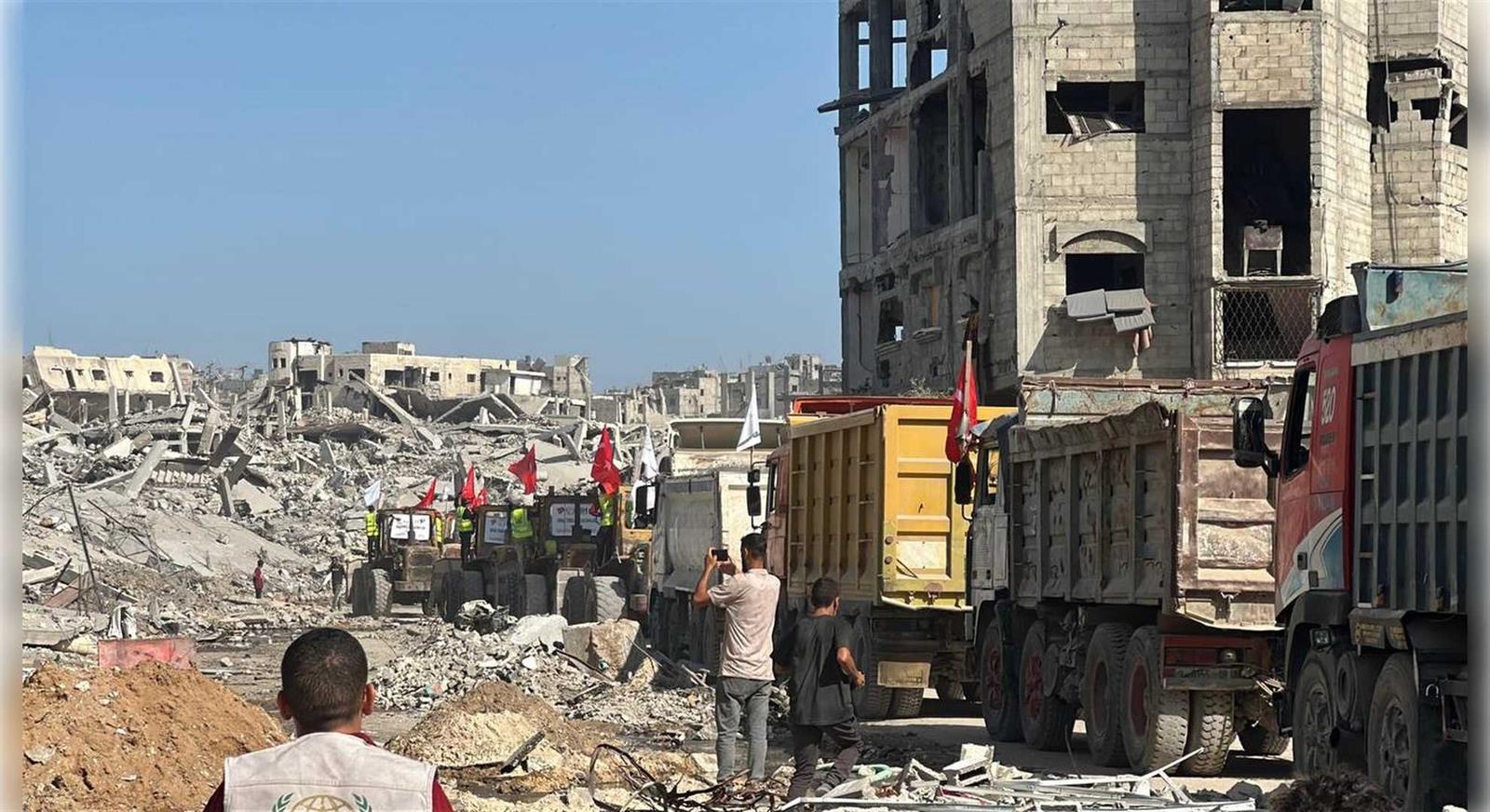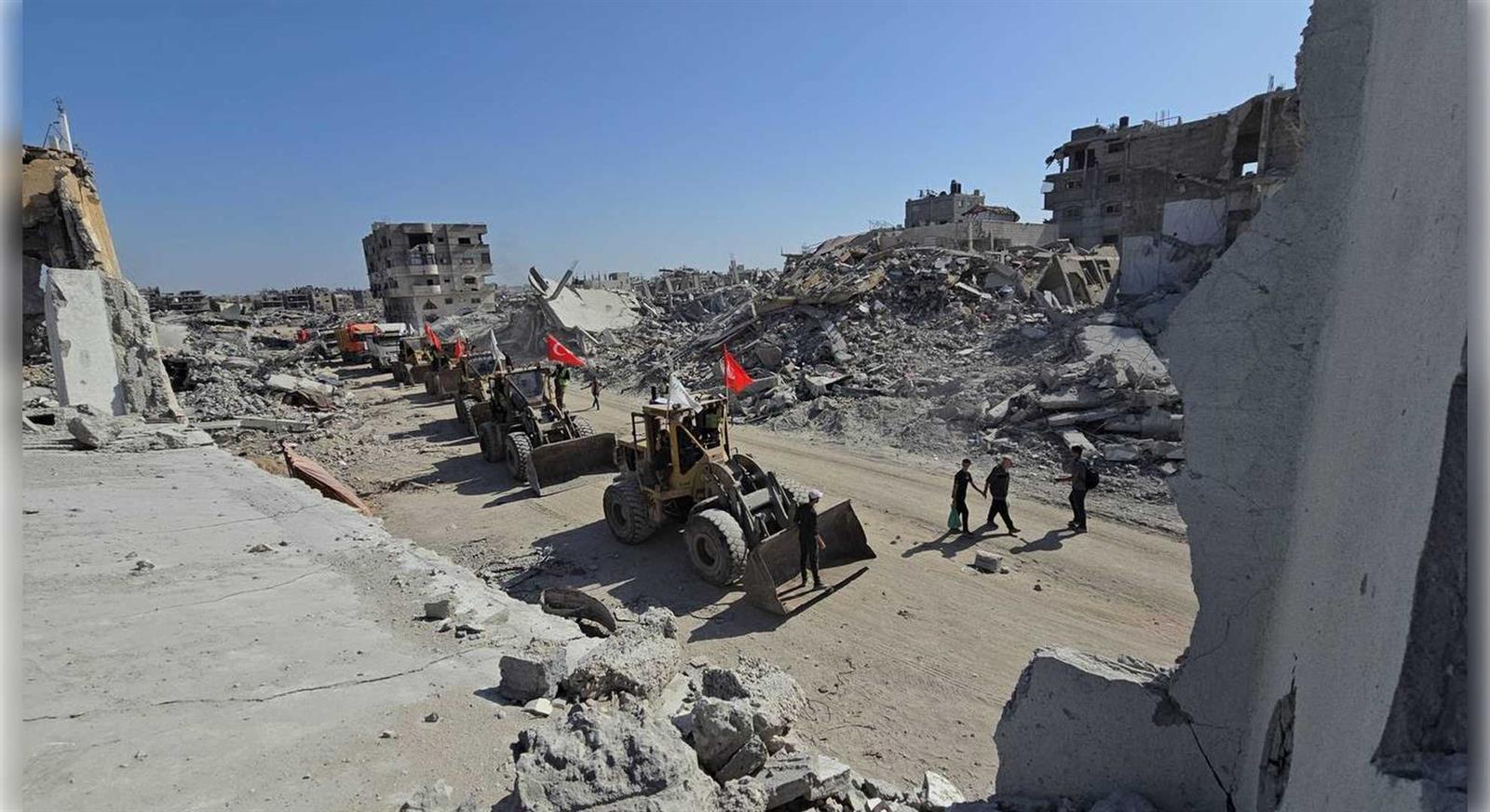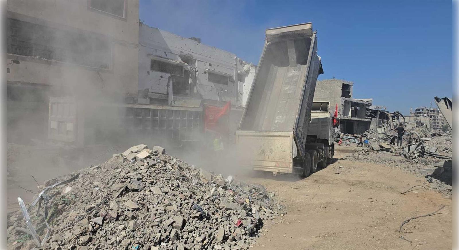 7 Ekim 2023’ten bu yana süren saldırılarda, İsrail’in uyguladığı sistematik şiddet sonucu 70 binden fazla sivil hayatını kaybetti, 130 binden fazla kişi yaralandı. Rjimin sürdürdüğü insanlık dışı abluka sebebiyle 460’tan fazla kişi açlıktan yaşamını yitirdi. Gazze Şeridi’nde saldırılar nedeniyle 454 binden fazla konut tamamen yıkıldı; okullar, hastaneler, altyapı tesisleri ve kamu binaları kullanılamaz hale geldi. İHH, özellikle Gazze’nin kuzeyinde büyük yıkıma uğrayan bölgelerde ağır iş makineleriyle enkaz kaldırma faaliyetleri yürütüyor. Bu çalışmalarla, hem halkın ulaşımını kolaylaştırmak hem de yardım malzemelerinin dağıtımını hızlandırmayı hedefliyor. Altyapının tamamen çökmesi nedeniyle içme suyu kaynaklarının büyük bölümü kullanılamaz hâle gelirken, vakıf günlük olarak binlerce kişiye nitelikli içme suyu ulaştırıyor.