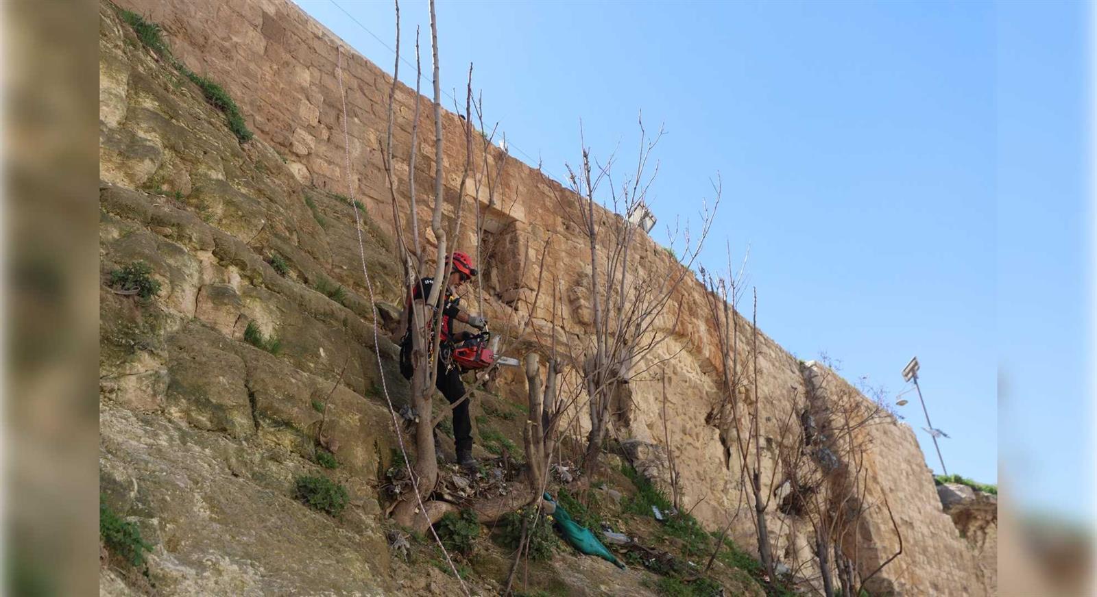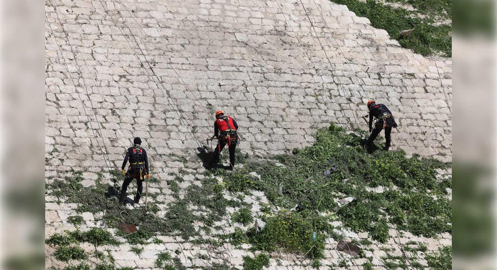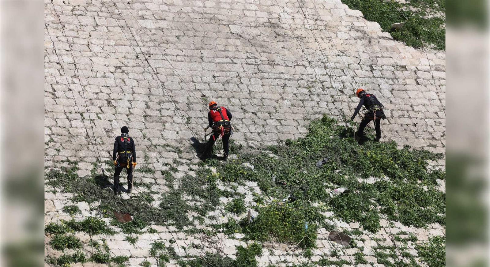 İHH Arama Kurtarma, Genç İHH, Halep Valiliği ve Halep Belediyesi, savaşın izlerini taşıyan tarihi Halep Kalesi’nin çevresinde biriken moloz, atık ve çeşitli kalıntıları temizleyerek hem ziyaretçiler hem de bölge halkı için daha sağlıklı bir ortam oluşmasına katkı sağladı. Ekipler ayrıca kalenin iç kısmında ve duvarlarında biriken toz, çöp ve çeşitli kalıntıları da temizledi. İHH Arama Kurtarma ekipleri iple erişim tekniklerini kullanarak 22 metre uzunluğundaki kale duvarlarının bakım çalışmalarını 12 kişilik ekibiyle gerçekleştirdi. İHH Suriye Çalışmaları Sorumlusu Hamza Dinçer, temizlik çalışmalarıyla ilgili bilgi verdi.
