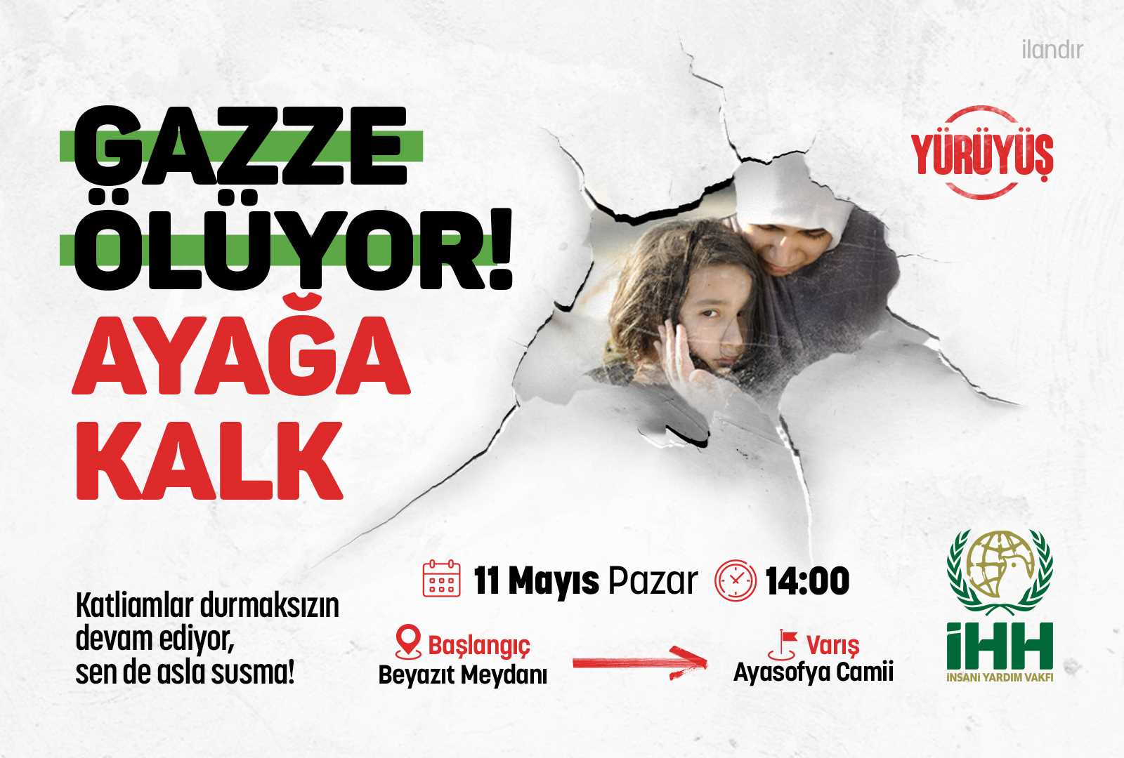 İHH İnsani Yardım Vakfı ve çok sayıda sivil toplum kuruluşu tarafından, soykırımcı apertheid rejiminin insanlık dışı saldırılarına ve devam eden ablukasına tepki göstermek amacıyla yürüyüş eylemi düzenlenecek.