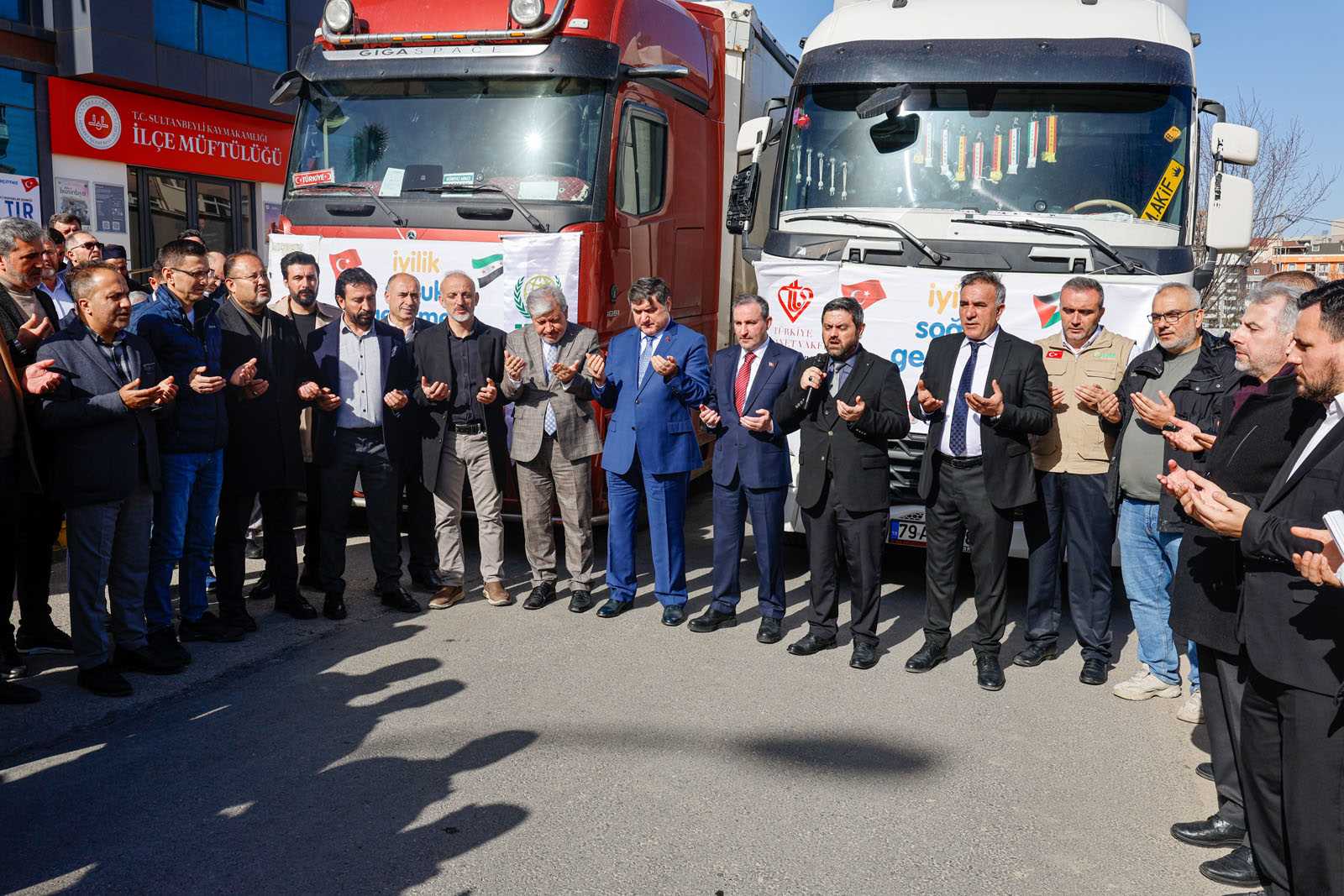 “İyilik Soğuk Geçirmez” projesi çerçevesinde şu ana kadar Gazze, Suriye ve Sudan’a 20 tır insani yardım malzemesi gönderen Sultanbeylili sivil toplum kuruluşları, düzenlenen programda 5 tır yardım malzemesi daha gönderdi. Sultanbeyli İlçe Müftülüğünün önünde düzenlenen uğurlama töreni Kur'an-ı Kerim tilavetiyle başladı.