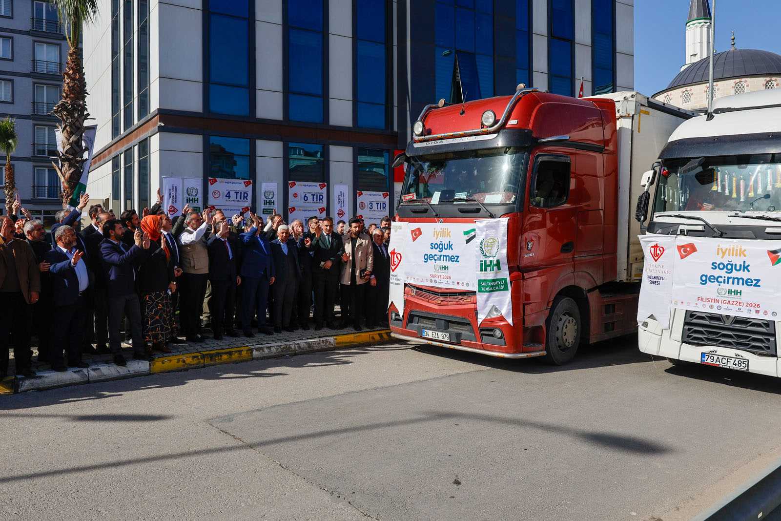 İlçe Müftüsü Bilal Albayrak'ın dua ettiği törende yardım tırlarından 2'si Gazze'ye, 2'si Suriye'ye ve 1'i de Sudan'a olmak üzere toplam 5 tır yolcu edildi.