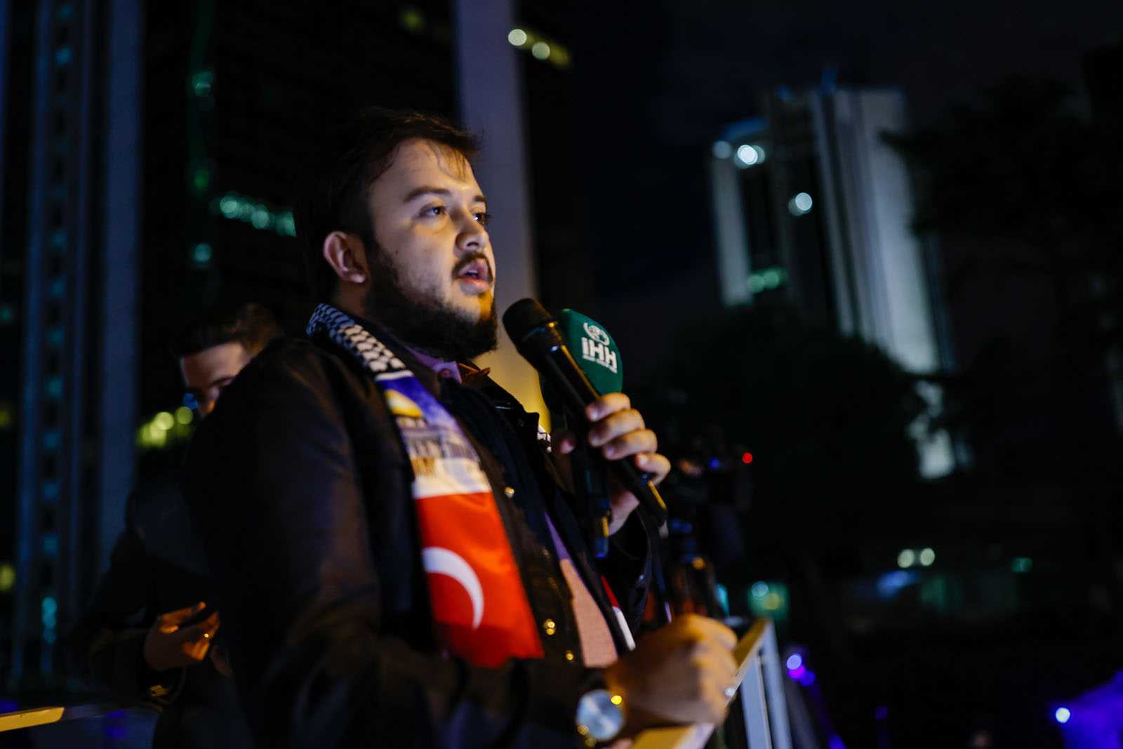 Yaroğlu’nun ardından konuşan Aktivist Ferhat Çalışye, “Filistin dünyanın en özgür yeridir. Aslında tutsak olan bizleriz. İslam dünyası tutsak durumundadır. Allahu zulcelal İslam dünyasındaki devlet idarecilerine ve Müslümanlara birlik versin” ifadelerini kullandı.