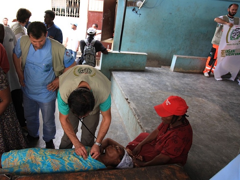 Ekipte bulunan 3 gönüllü uzman doktor, genel cerrahlar Dr. Ali Alemdar ve Dr. Giray Yavuz ile Acil Yardım Hekimi Dr. Ali Yalçın yaraları sarmak için kolları sıvadı. Muayene ve tedaviye başladılar. Doktorlar ilk önce İHH’nın bakımlarını üstlendiği yetim çocukları muayene ettiler.